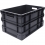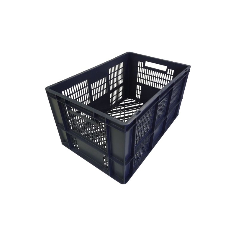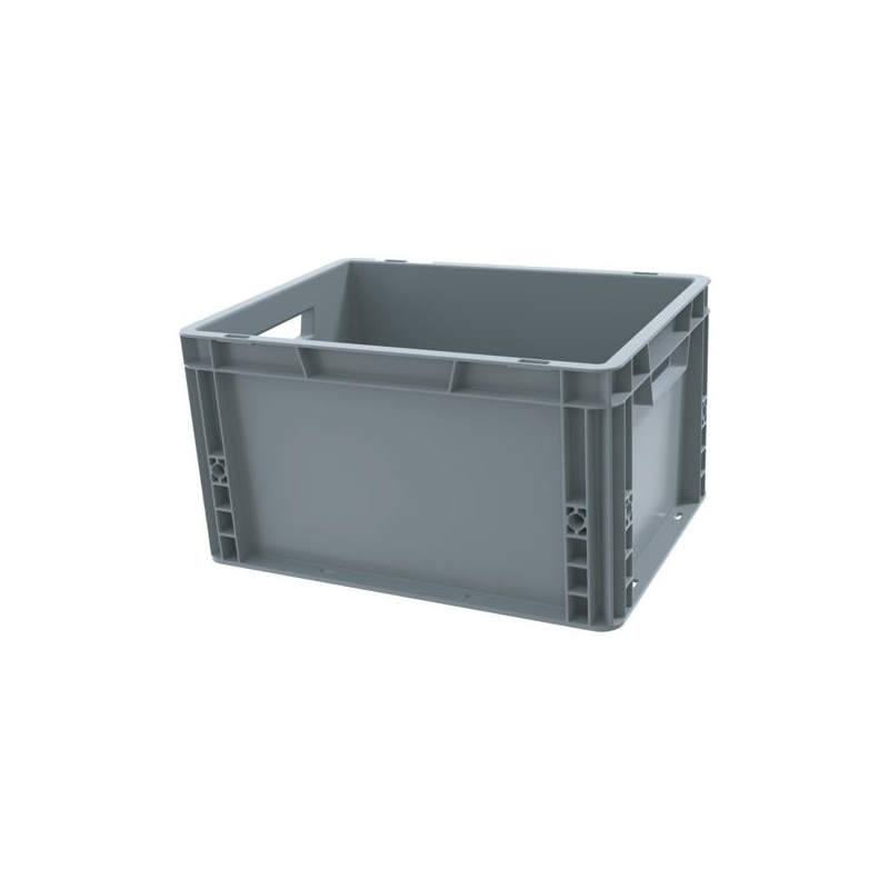 Gerbable et palettisable, avec poignées ouvertes, en polypropylène (PP) gris. Conforme aux normes européennes, stockage facile sur palette normalisée. Fond lisse pour les modèles 400 x 300 mm. Fond renforcé pour les modèles 600 x 400 mm En option chariot roulant.