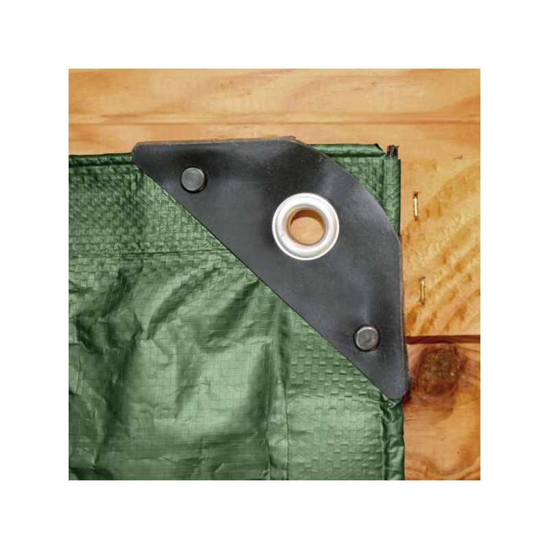 Toile tissée indéchirable, imperméable et résistante aux UV. Périphérie et angles renforcés avec œillets en aluminium tous les 1 m.