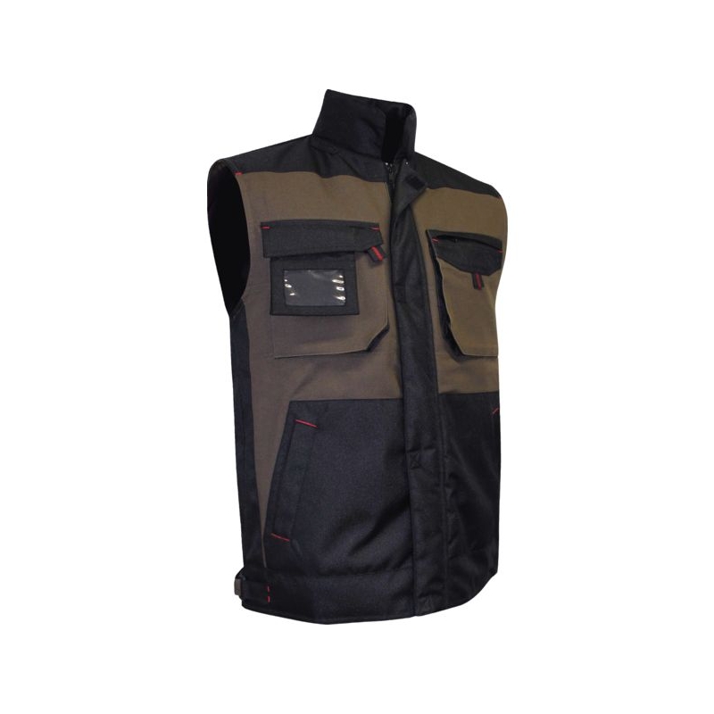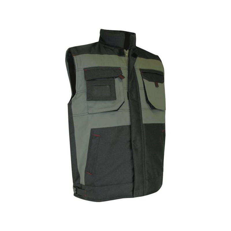 60% coton 40% polyester croisé, 300 g/m². Empiècements : oxford 900D 100% polyester imperméable 245 g/m² Col montant, emmanchures élastiquées, multipoches, triples piqûres, dos long, taille resserrable. Coloris : gris/noir Taille : 2 à 5