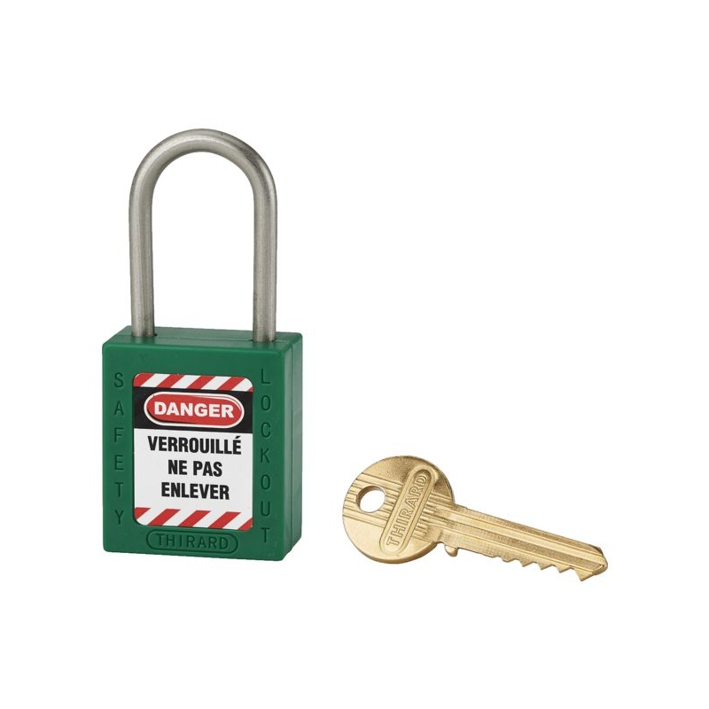 Corps ABS non conducteur avec anse en acier inoxydable. Double ancrage. Livré avec 1 clé. Fonction clé prisonnière. Corps (L x H) : 38 x 44 mm Conditionnement : boite