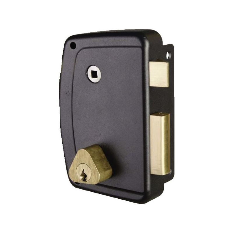À cylindre laiton. Pêne ½ tour en laiton. Équerre au ½ tour pour manœuvre extérieure. Coffre et gâche acier embouti. Pênes laiton massif. Protection anticorrosion. Livré avec gâche et 3 clés. Course du pêne dormant : 21 mm Finition : époxy noir Modèles horizontaux : Dimensions (LxHxP) : 143 x 99 x 25 mm Entraxe : 60 mm Fouillot carré : 6 mm Modèles verticaux : Dimensions (LxHxP) : 82 x 130 x 25 mm Entraxe : 70 mm Fouillot carré : 7 mm Conditionnement : boite