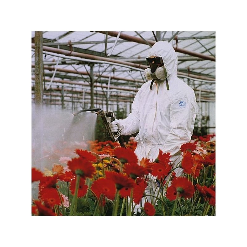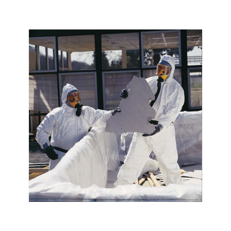 Non tissé Tyvek® de Dupont. Capuche en 3 parties pour un ajustement optimal (particulièrement adaptée au port du masque). Fermeture éclair avec blocage automatique et rabat en Tyvek®. Taille élastique collée, élastique aux poignets, à la capuche et aux chevilles. Utilisation : barrière contre les particules > 1µ, contre les liquides chimiques, résistance à la pression liquide 120 cm. Coloris : blanc Taille : 2 à 6 Norme : CE - Cat III - types 5B 6B - EN 1149-5 - EN 1073-2 - EN 14126