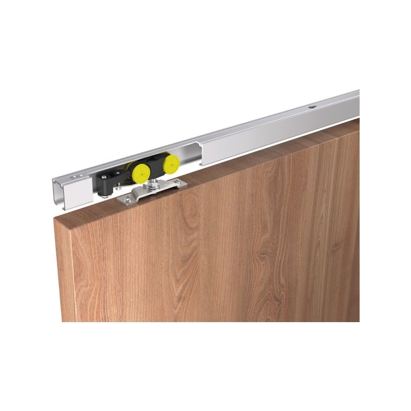 Système coulissant droit pour porte en bois de 80kg, rail aluminium comprenant : - 2 montures MA 80A, - 2 platines 10036, - 2 butées d'arrêt, - 1 guide 1103R, - 1 niveau à bulle, - 1 rail aluminium percé tous les 440 mm, section 31.2 x 26.5 mm, - visserie et notice. Conditionnement : boîte Colisage : 8 pièces