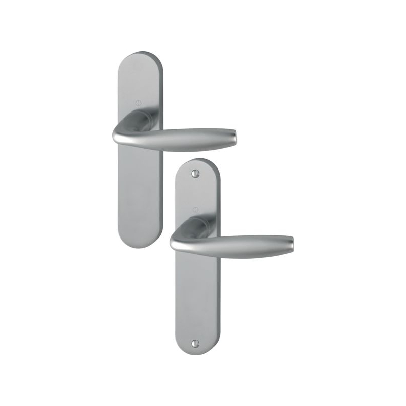 Pour porte intérieure d’épaisseur de 38 à 47 mm. Carré à montage rapide garantissant un montage simple, sans jeu, sans outil et durable. Plaque : 190 x 41 mm (pour entraxe 165 mm) et 234 x 39 mm (pour entraxe 195 mm) Entraxe de serrure : 70 mm Fouillot carré : 7 mm Longueur béquille : 127 mm Saillie de la béquille : 56 mm Finition : aluminium aspect inox Conditionnement : boîte