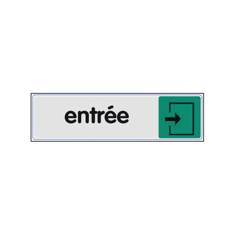En plexiglas, textes et logos imprimés au verso, aspect brillant durable et nettoyage facile. Fixation par adhésifs puissants pré-positionnés. Conforme aux normes AFNOR. Dimensions : 170 x 45 mm Coloris : fond argent, textes et logos noirs, logo sur fond couleur