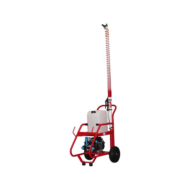 Pour la pulvérisation de tous produits liquides. Moteur électrique monophasé 220 V - 0,6 Ch. 20 bar de pression. Emplacement pour bidon de 21 l. Débit : 19 l/mn Équipé de 25 m de flexible, d'une lance de pulvérisation de 0,60 m à effet venturi.
