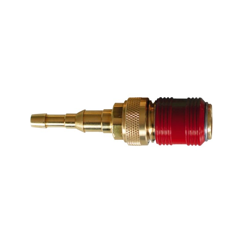 Raccords rapides à obturation permettant d’accoupler ou de désaccoupler rapidement et sous pression des appareils ou des tuyaux tout en rendant impossible le raccordement de 2 canalisations de gaz incompatibles. Dispositif comprenant une double sécurité rendant impossible les déverrouillages intempestifs, par le serrage de la molette crantée. Le raccord femelle est équipé d’un système d’obturation automatique empêchant la fuite du gaz lorsque les 2 éléments sont désaccouplés.